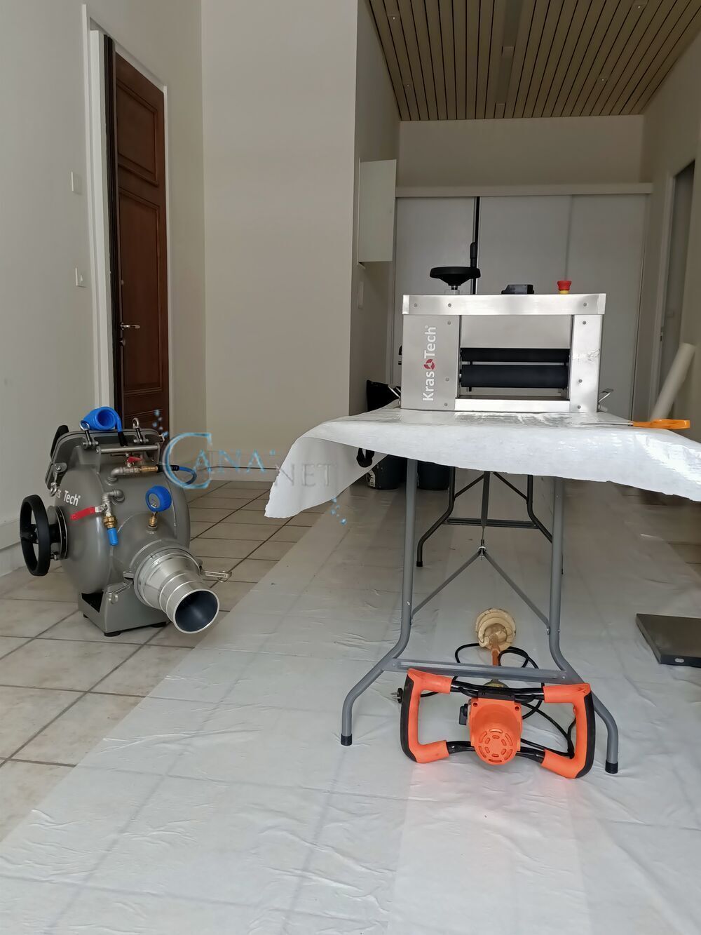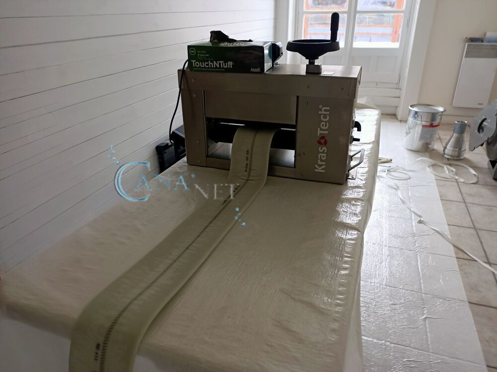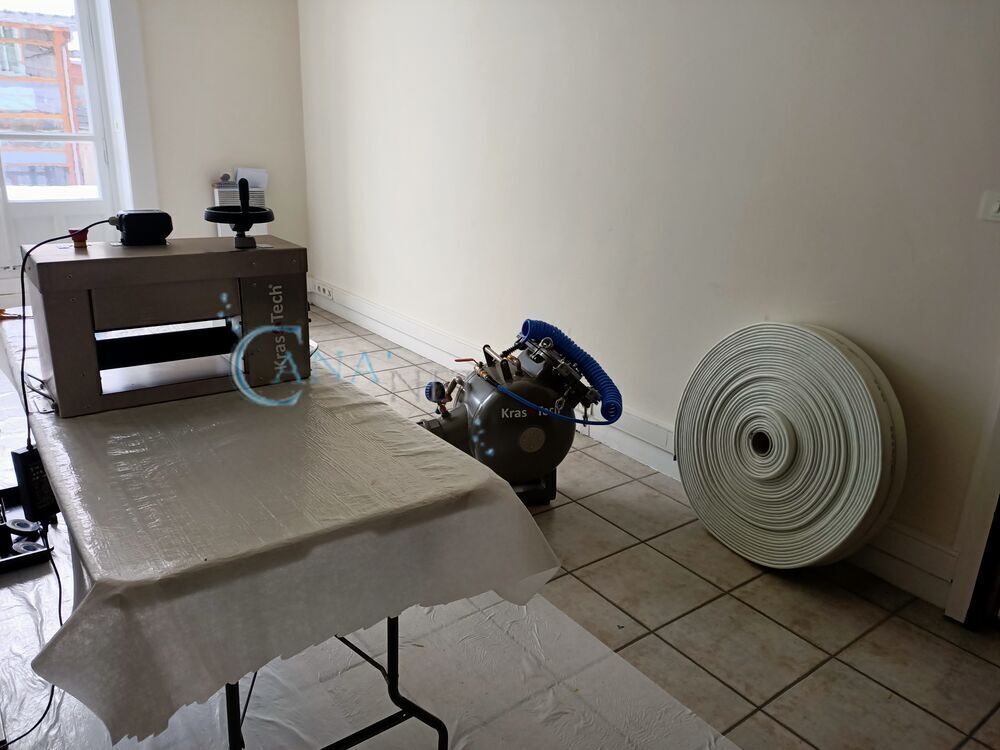 Préparation du matériel pour la mise en place d'une gaine dans une colonne d'évacuation EU d'immeuble