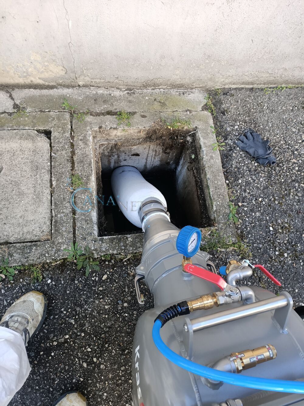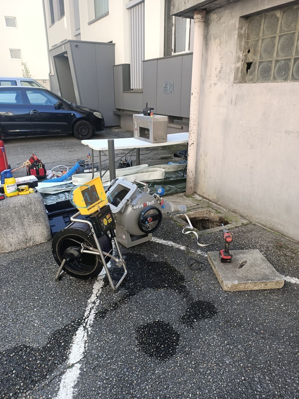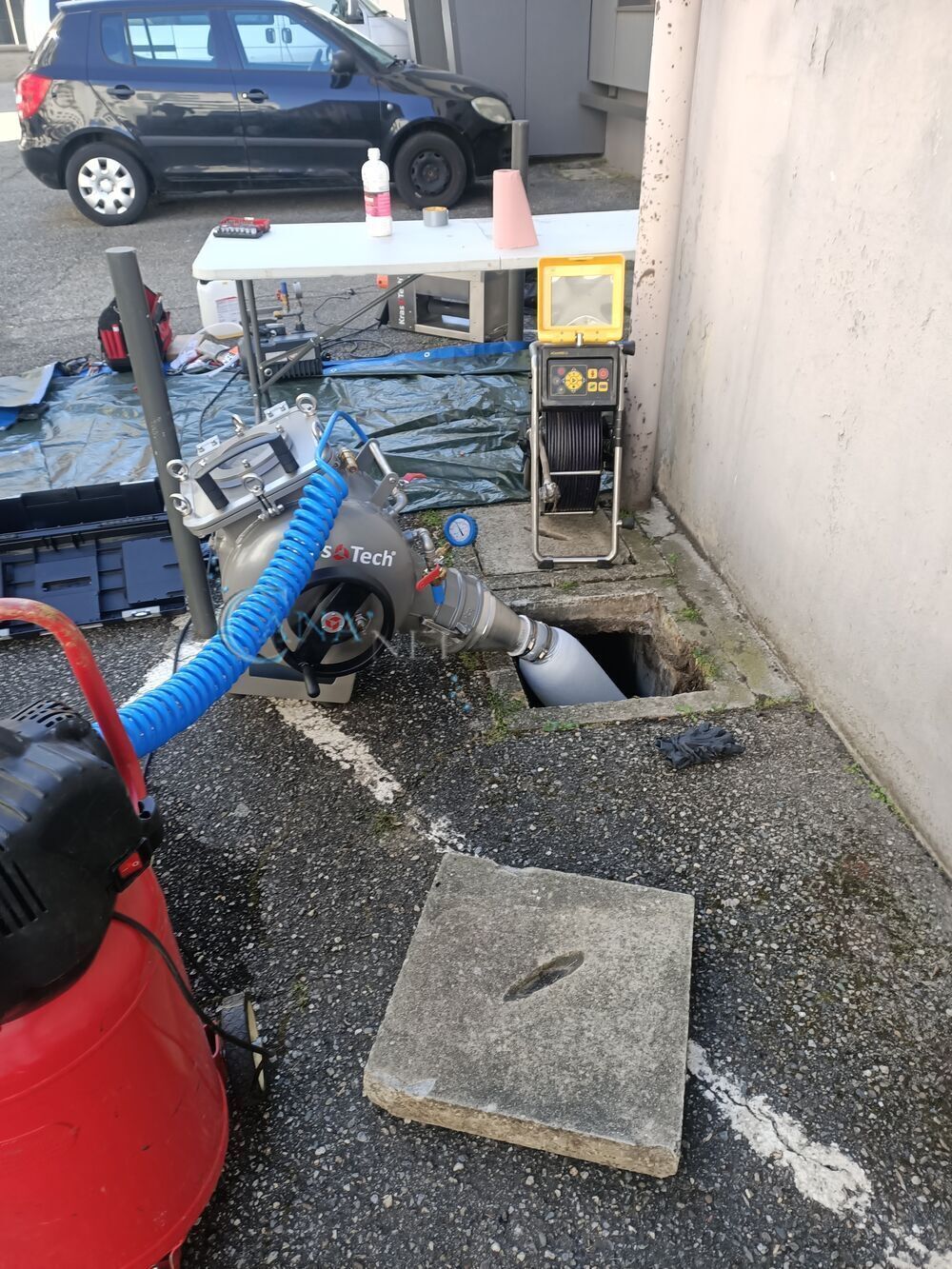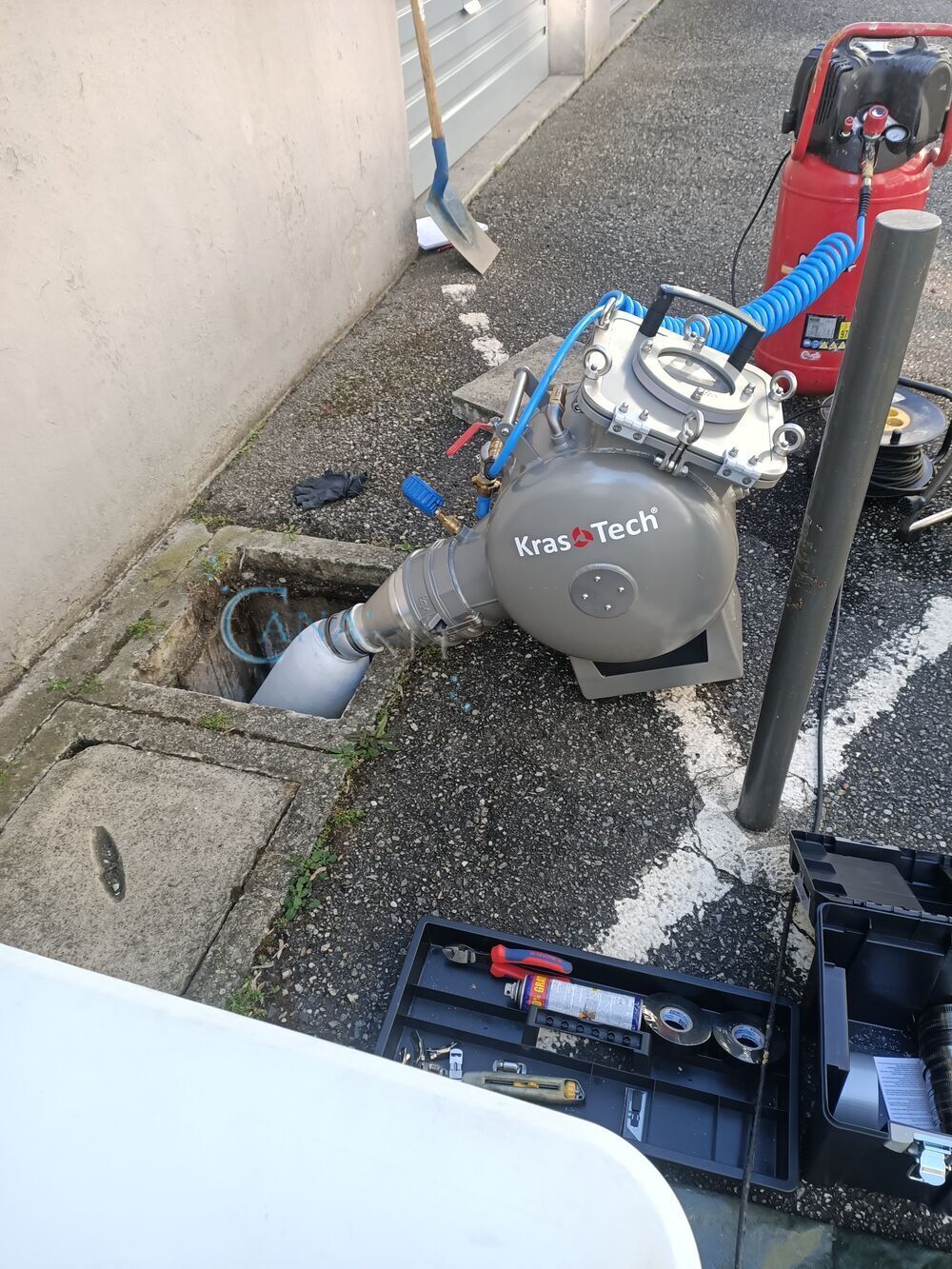 Pose de gaine sur un collecteur EP en traversé de garage